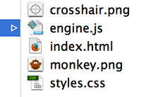 3. Open index.html, styles.css, and engine.js in your favorite text editor. Look over the code to become familiar with it.