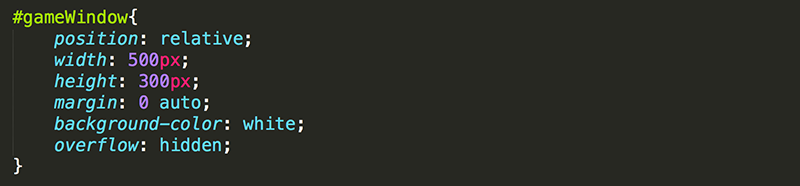 2. Often you will want to hide the overflow of an element, such as the gameWindow. Set the gameWindow's overflow to hidden.
