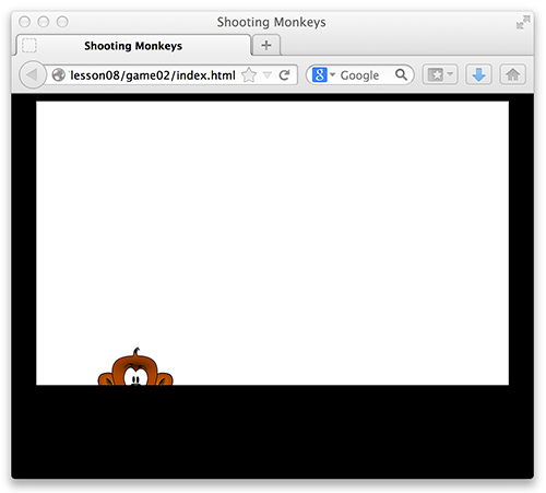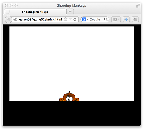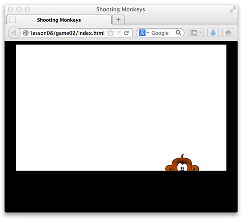 1. Add a line of JavaScript to position the monkey at the bottom of gameWindow by setting its top property to 260px.