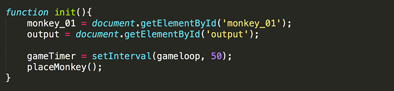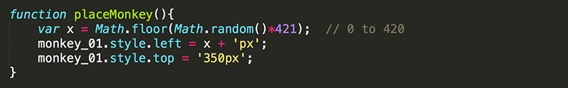 4. Now you can simplify the init function by replacing the redundant code with a function call to placeMonkey().