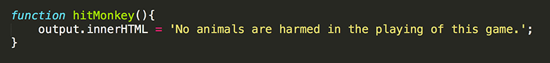 3. With this code, clicking on a monkey will cause the disclaimer message to appear under the gameWindow.