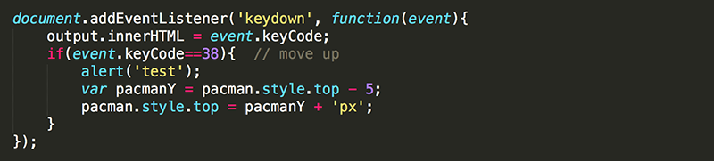 Now, pressing the up arrow should move pacman up 5px.