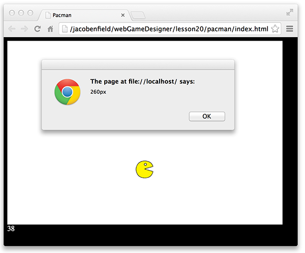 Now do you see a problem? pacman.style.top has no value. Recall from a previous lesson that you need to set the initial top and left position in JavaScript instead of in CSS.