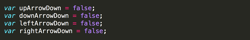 8. Declare leftArrowDown, rightArrowDown, and downArrowDown as global variables and set their initial value to false.
