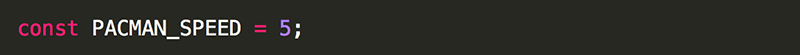 12. At the top of the JavaScript along with the global variable declarations, declare PACMAN_SPEED as a global constant and give it a value of 5.