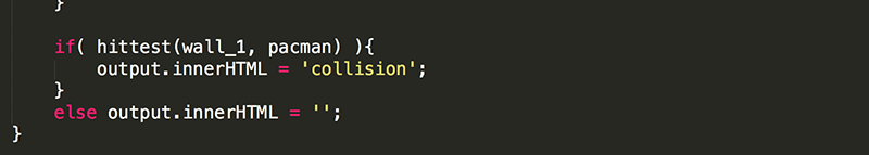 Now the output div should display "collision" only when pacman and wall_1 are actually colliding.