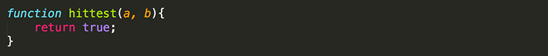 2. Create a hittest(). For now, have the function always return a value of true. The variables a and b are used to receive the information (arguments) that are passed to the function in the function call. In this case, a = wall_1 and b = pacman.