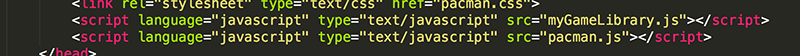7. Add a link to myGameLibrary.js in your HTML, just as you linked to pacman.js.