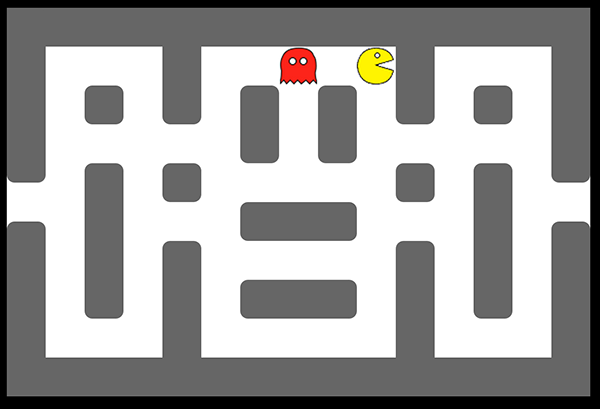 Now the ghost should move to the right until he hits a wall. redGhost is not the smartest ghost in the world yet, but you will give him some AI (Artificial Intelligence) in the next lesson.