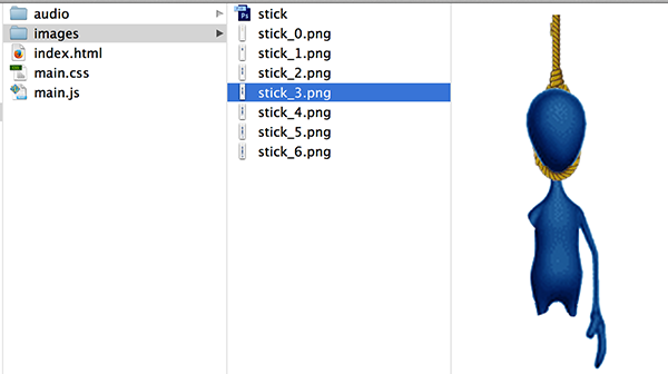 Notice there are 7 images to represent the various stages the stickman goes through before being hung, with numeric identifiers in the name.