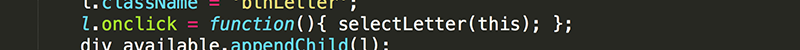 4. Add onclick functionality to each button as it is being created. Pass the element (this) to the selectLetter() function.