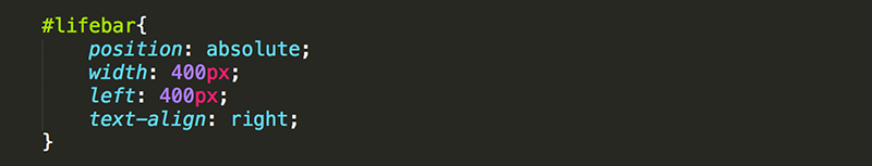Once you are confident the lifebar is where it belongs, delete the height and background-color. These were only added temporarily so we could see the lifebar.
