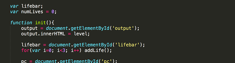 Declare lifebar as a global variable and then set it equal to the lifebar div once the page loads. Also, declare numLives as a global variable with an initial value of 0. Finally, create a loop that will call the addLife() function three times.